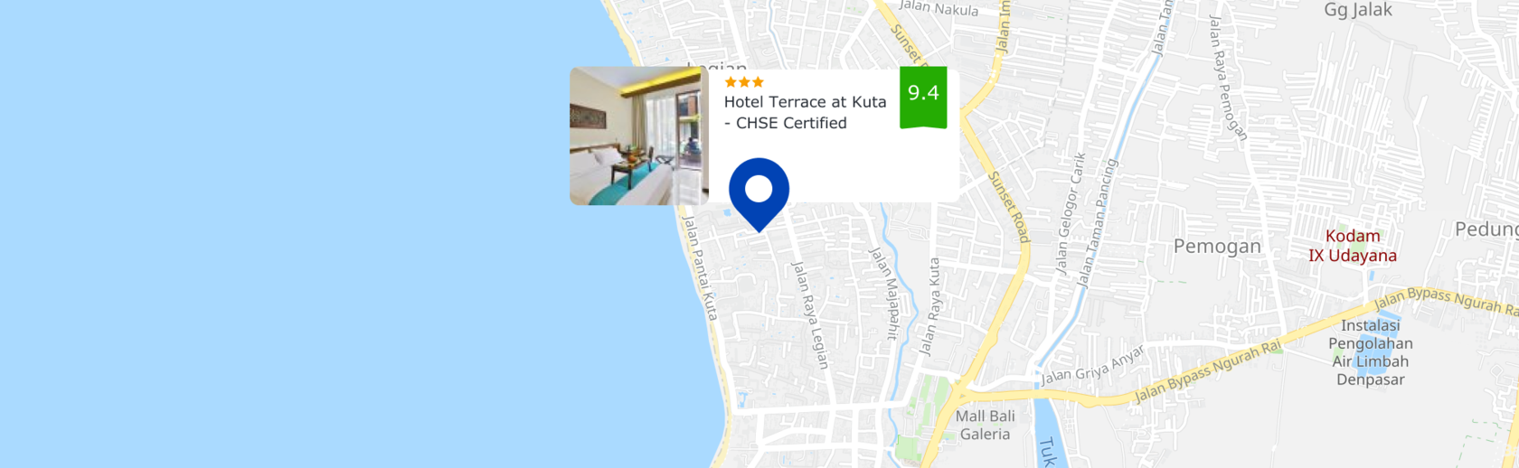 You can take a walk and explore the neighbourhood area of the hotel. Places nearby: Kuta Beach, Kuta Beach and Beachwalk.