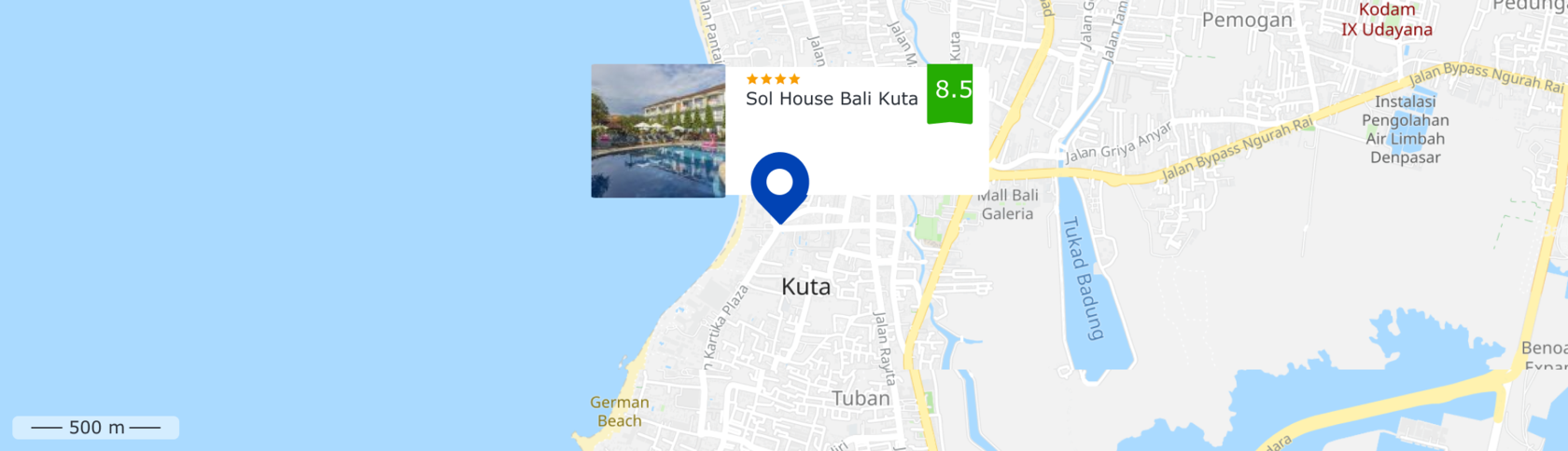 Отель Sol House Bali Kuta, идеально расположенный в туристическом районе Куты, обещает расслабляющий и прекрасный отдых. Предлагая разнообразные удобства и услуги, отель предоставляет все необходимое для хорошего ночного сна. Обслуживающий персонал встретит вас и проведет вас в Sol House Bali Kuta. Каждый номер элегантно обставлен и оснащен удобными удобствами. Доступ к открытому бассейну отеля, детскому бассейну, бильярду, саду сделает ваше пребывание еще более приятным.